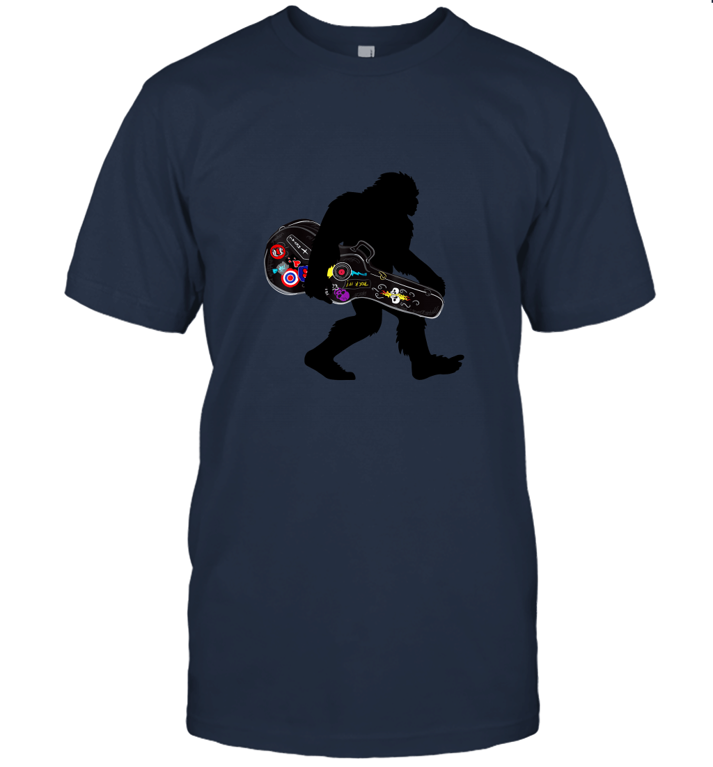 Rock N Roll Sasquatch Meme Bigfoot Carrying Guitar Unisex T-Shirt